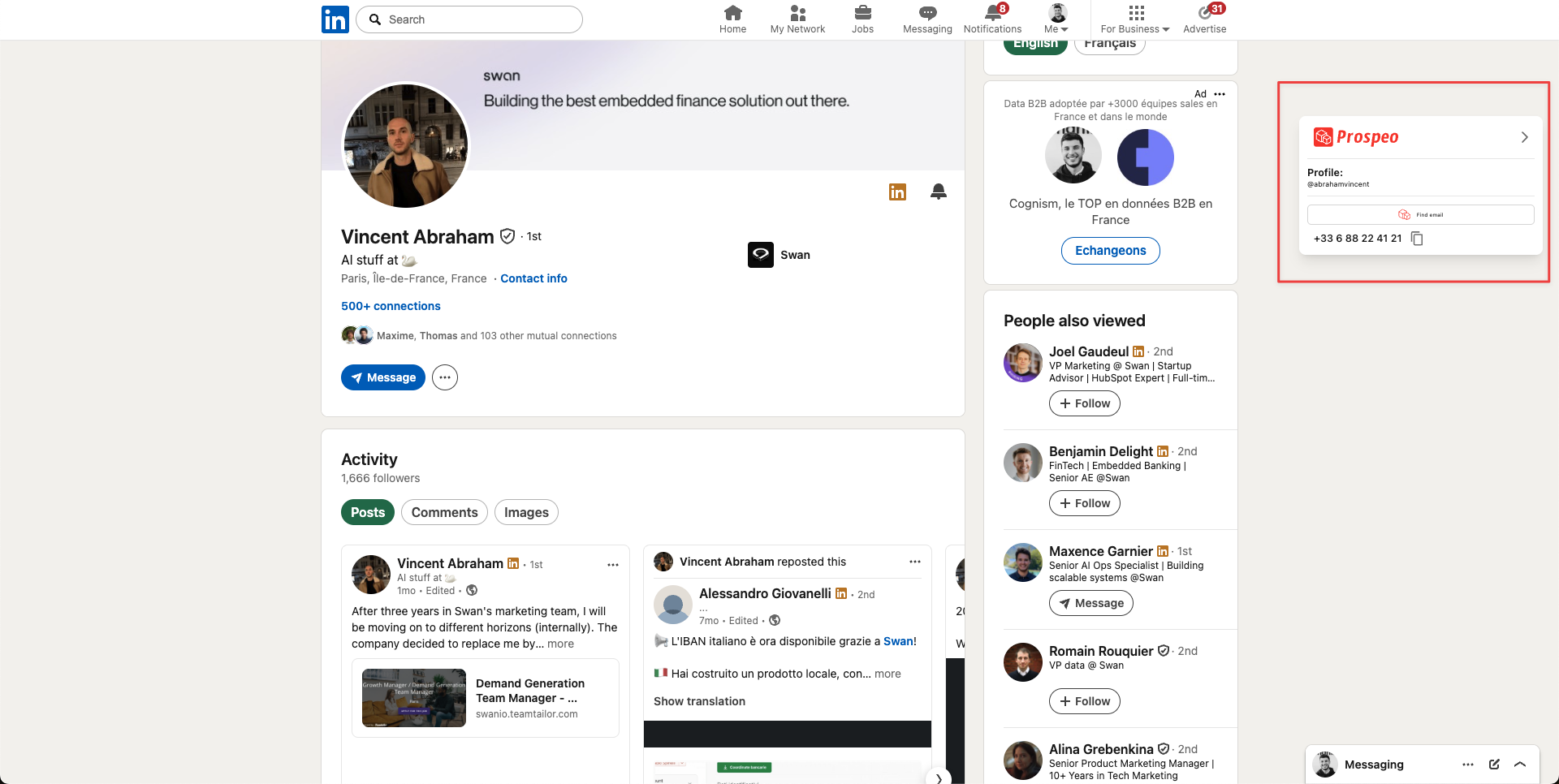 Contexte : Tu as identifié un prospect précis sur LinkedIn et tu veux son email.